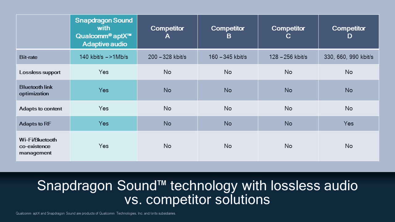 В Qualcomm Technologies мы воодушевлены будущим звука и постоянно ищем способы помочь нашим клиентам создавать новые захватывающие впечатления от прослушивания. Аудио без потерь означает математически точный бит-в-бит, без сжатия аудиофайла. До сих пор необходимая скорость передачи данных для его доставки по Bluetooth не была доступна.