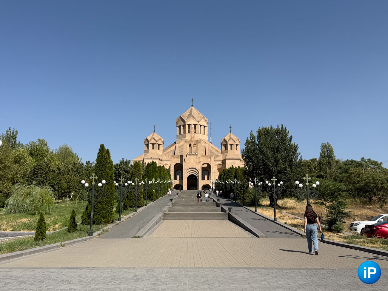 Собор Святого Григория Просветителя . Почувствуйте контраст, как говорится: со стороны метро он ухожен и красив, как и внутри. Но с другой – пустырь, который смотрит на грязные солнечные панели, спрятанные в земле.