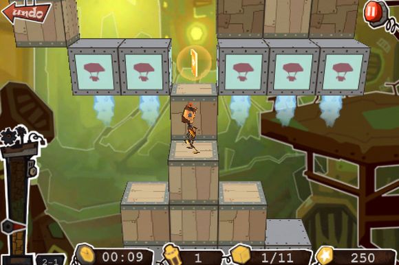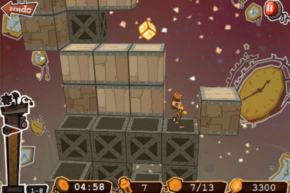 Передвигать ящики нужно одновременно быстро и с умом. По неведомой причине местные контейнеры способны буквально висеть в воздухе, если любой из их углов соприкасается с твёрдой поверхностью. Этой возможностью, выходящей за рамки реальной физики, нужно пользоваться регулярно. Помимо тяжёлой работы грузчика, наш робот собирает бонусы, разбросанные в самых труднодоступных местах. Без них получить все три звезды за прохождение уровня не получится. В каждой локации по пять-семь уровней. При определённой сноровке и практике каждый из них проходится секунд за сорок.