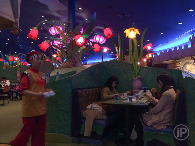 Но вернемся к Диснейленду, с которого я начал испытание карточки Рокетбанка. Посмотрев на местные красоты и прокатившись на паре каруселей, мы решили перекусить, и выбор пал на большой ресторан, выполненный в стилистике «Алисы в стране чудес»: