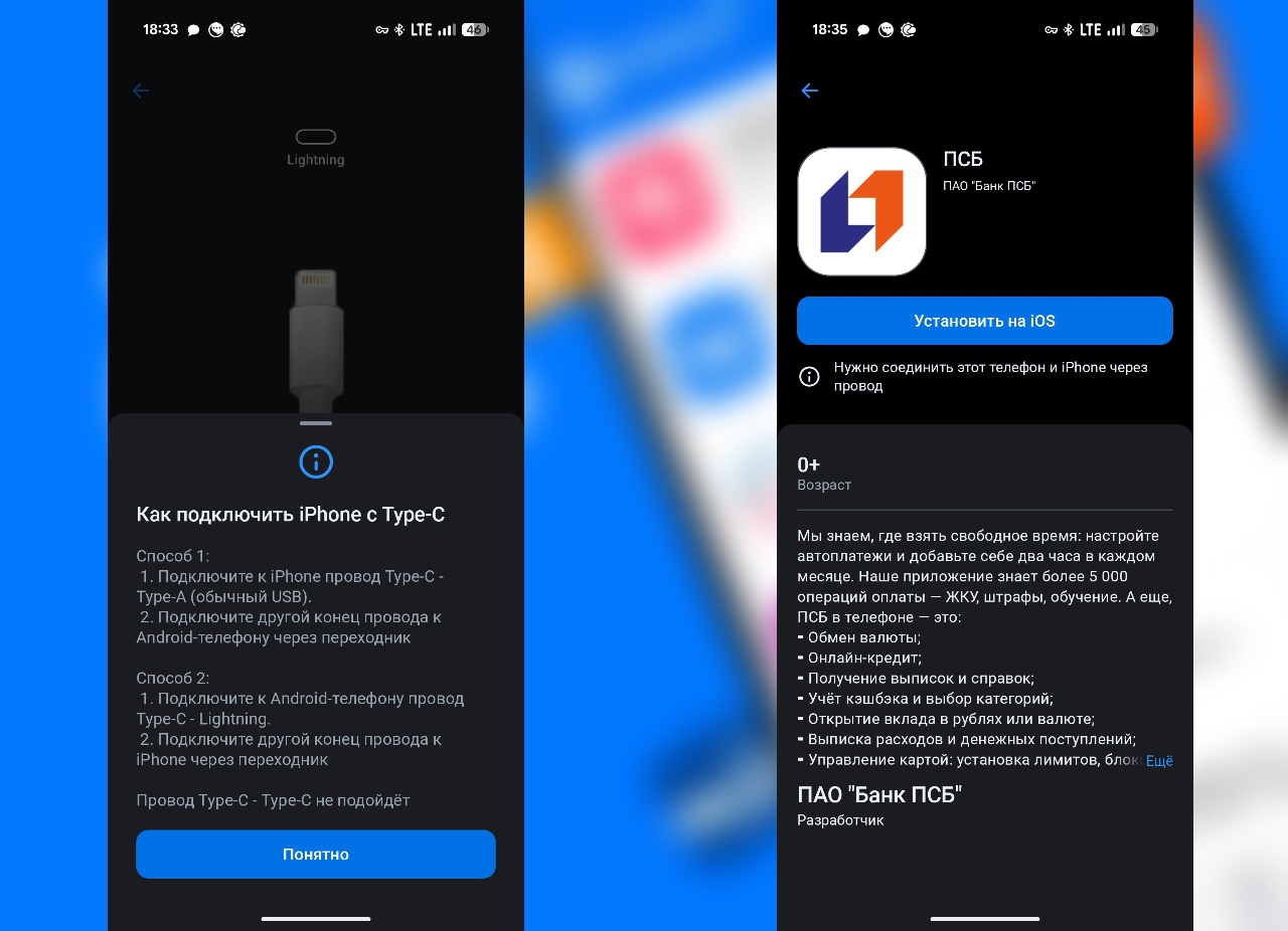 В сервисе нашли функцию под названием RuStore Bridge, которая позволяет устанавливать приложения на iPhone. Для этого понадобится Android-смартфон и кабель: устройства подключаются напрямую, после чего установка происходит с Android-девайса на iOS.