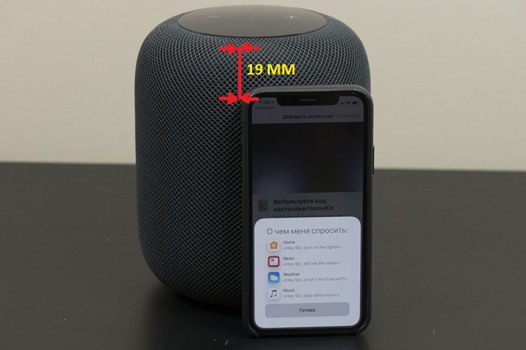 Да, это достаточно увесистая конструкция при своих довольно скромных габаритах. Для сравнения, высота iPhone X — 143,6 мм, всего на 19 мм ниже HomePod.