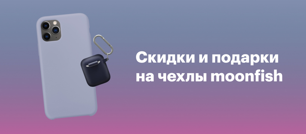 А приобретая AirPods или AirPods Pro, вы получите скидку 30% на любой чехол от moonfish. Тоже приятный бонус.