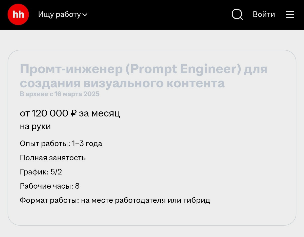 Как видно из скриншота, таких специалистов нанимают компании и платят им немалую зарплату. Вакансии есть и на HeadHunter, и на Finder.work. Но чтобы стать промт-инженером, нужно разбираться, что такое нейросети в целом и языковые модели в частности, а также как они устроены и как обучаются. Об этом и поговорим.
