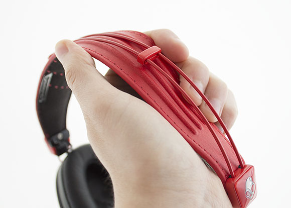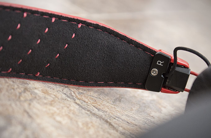 А с внешней стороны ободок покрыт всё той же кожей, подозрительно похожей на кожзам. В этот раз красной. Всё это выглядит на удивление цельно и красиво. А также быстро складывается, не сильно экономя место, но позволяя запихнуть наушники куда-нибудь в узкую сумку или рюкзак.