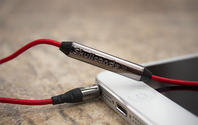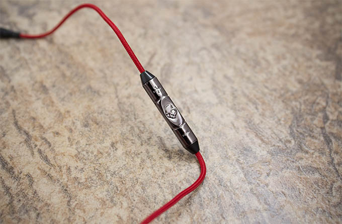 На кабеле есть пульт управления в одном стиле с моделью — якобы металлический, но на самом деле пластиковый, глянцевый. Химичить с простыми и понятными принципами в Skullcandy не стали: клавиши громкости меняют громкость, а при длительном нажатии перематывают песню; а центральная клавиша останавливает воспроизведение, пролистывая трек вперёд по двойному нажатию или назад по тройному. Ещё там есть небольшая дырочка для микрофона. Его качество вполне стандартное — без откровений, но для ответа на звонок пойдёт.