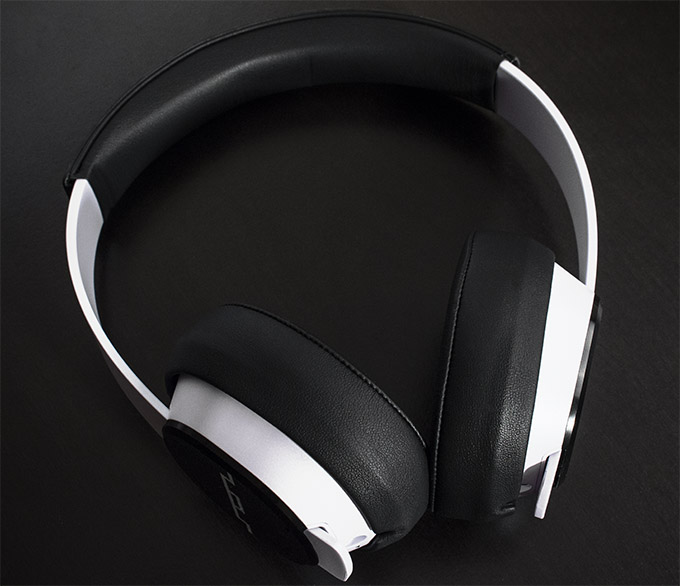 Любителей металла придётся растроить: это пластик такого же любопытного оттенка, что и сами наушники. На фотографиях и при свете мощных ламп он всё-таки кажется белым. Мягкая накладка из кожзама в верхней части – необходимый элемент для легкой и уверенной посадки.
