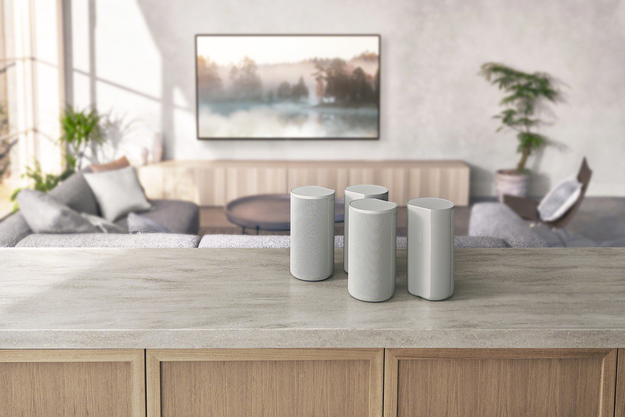 Инновационная система домашнего кинотеатра Sony HT-A9 является альтернативной саундбарам и звуковым панелям. Её плюс в том, что четыре небольшие колонки можно расположить в комнате где угодно, получив «обволакивающий», насыщенный объёмный звук.