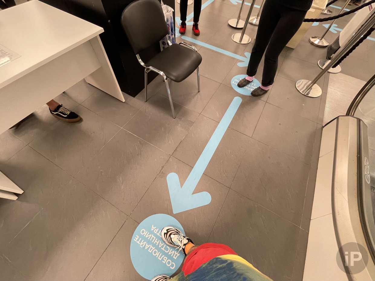 20:33 Спустился. Мне измерили температуру, попросили надеть перчатки и направили двигаться по кружочкам на полу.