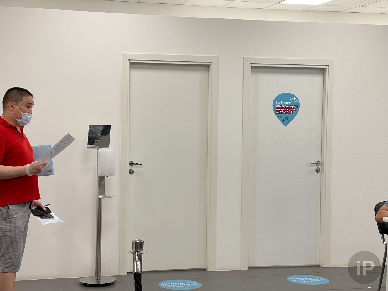 Уточнили, где начинается очередь, их направили к охраннику. Пара спросила, когда можно подойти на укол. Охранник говорит, завтра с 11 часов.