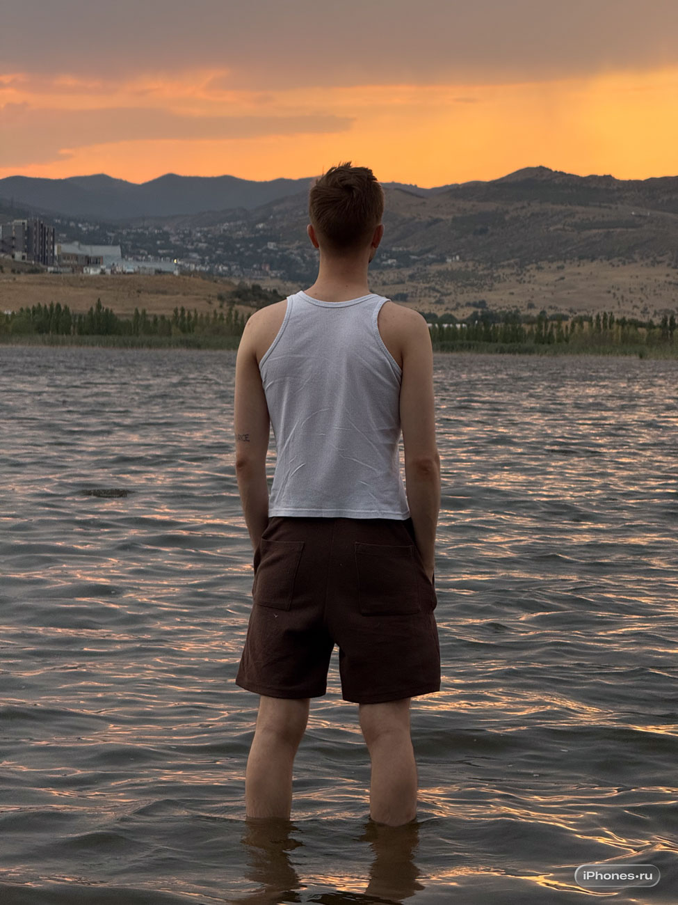 Например, изначально кадры с парнем в воде сильно отличались по цвету. Но с помощью встроенных в приложение Фото фильтров его легко было подгонать под тот световой рисунок, который получается на большой камере.