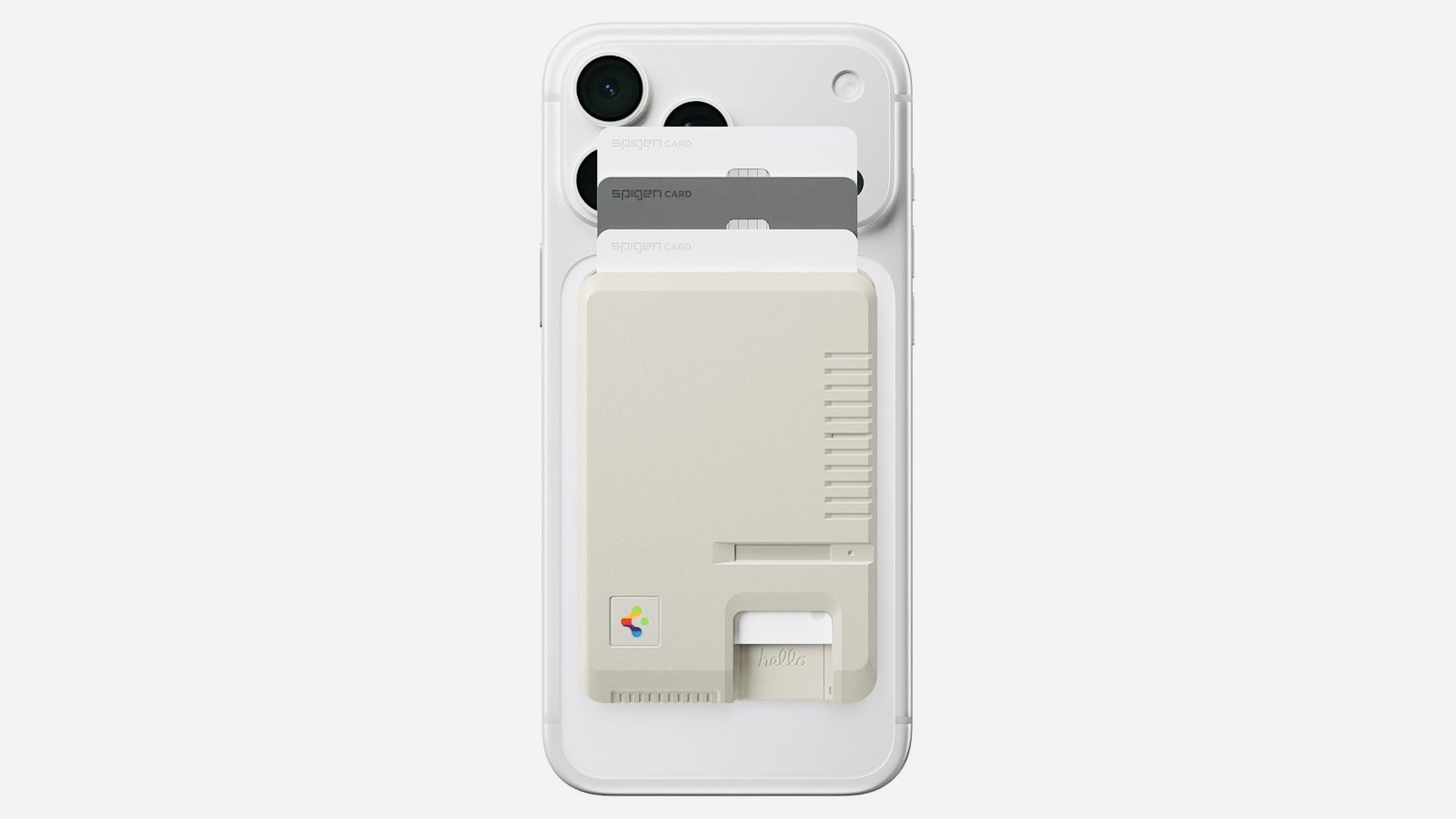 Он вдохновлён компьютером Macintosh 128K: есть элементы под «дискету», отсылки к старой клавиатуре и гравировка Hello. Аксессуар крепится через MagSafe, вмещает до трёх карт и подходит для всех iPhone, начиная с iPhone 12. [MacRumors]
