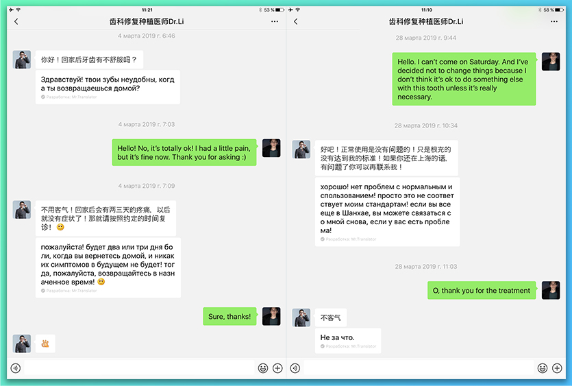 Общались с доктором Ли через WeChat, он интересовался состоянием и давал рекомендации