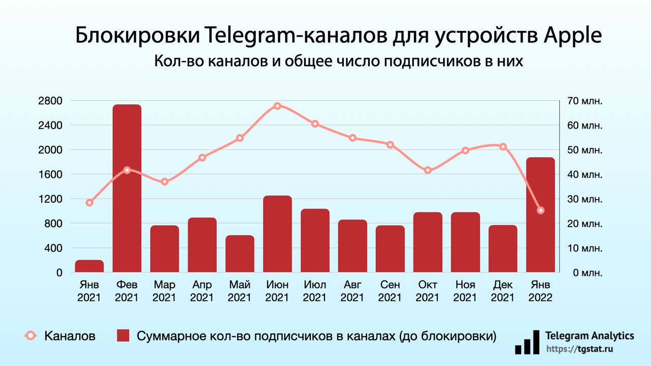 За 13 дней 2022 года Telegram заблокировал 1010 каналов по требованию модераторов App Store, сообщает сервис TGStat. В противном случае Apple могла удалить мессенджер из магазина.