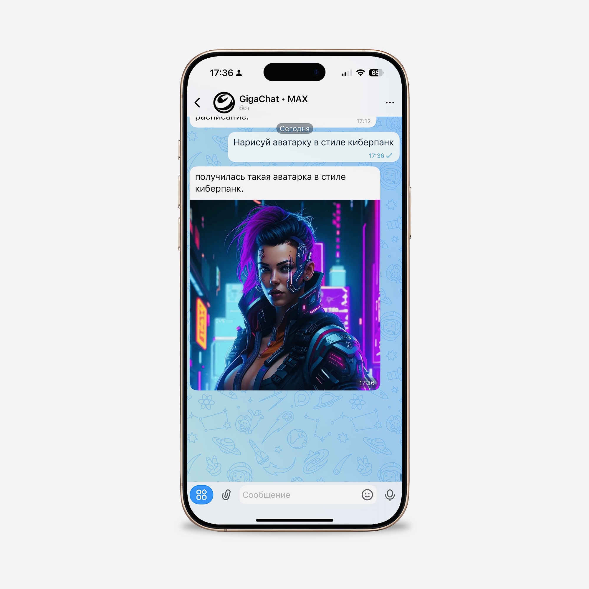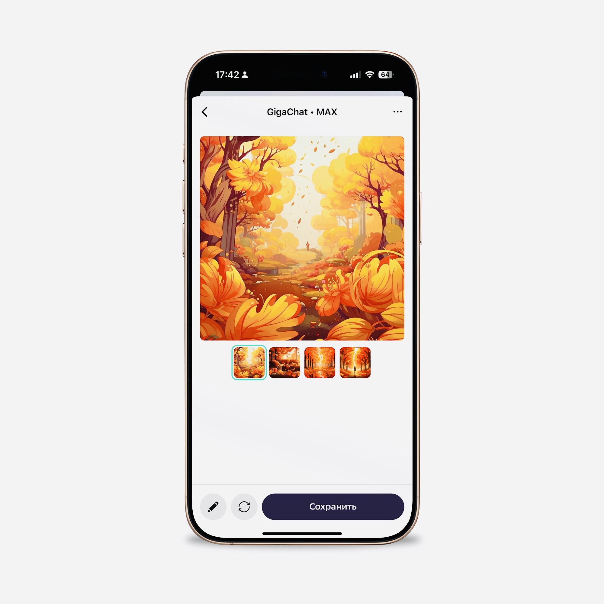 Ещё одна интересная фишка нового GigaChat — генерация изображений. Можно создать как открытку, так и обычное изображение.