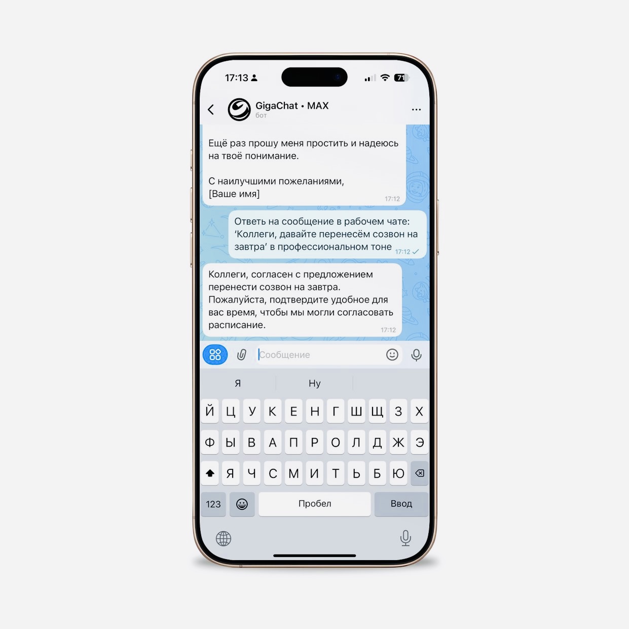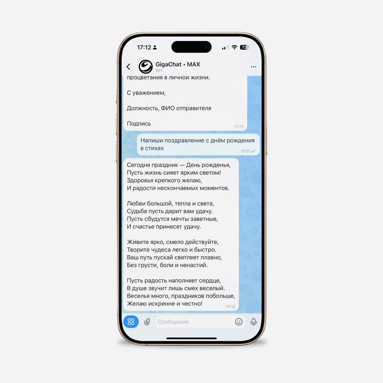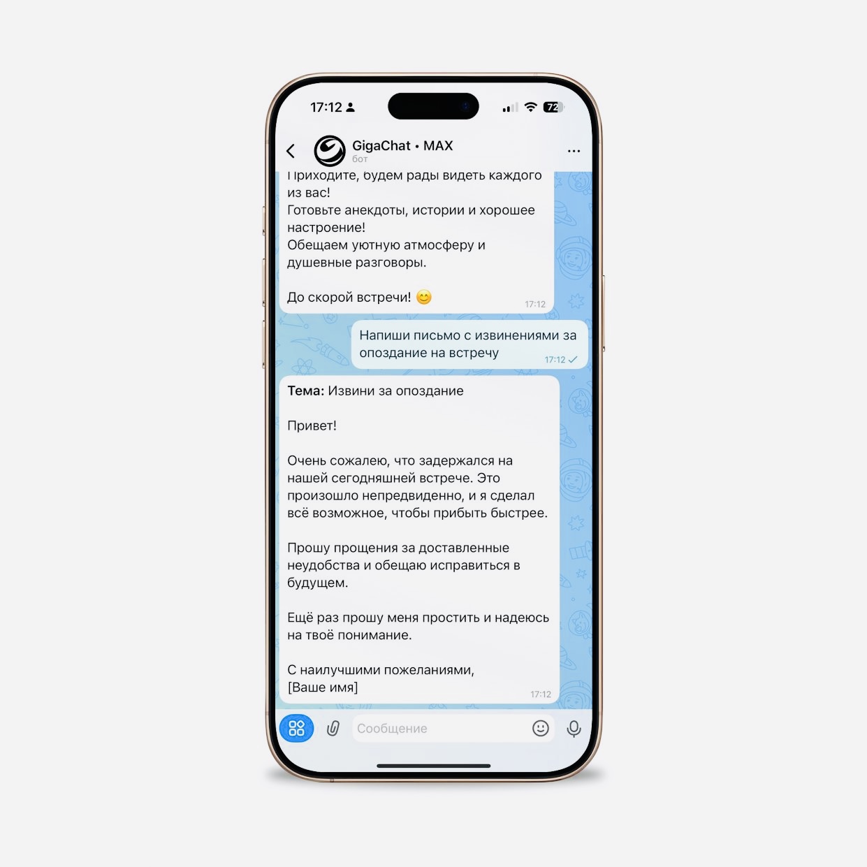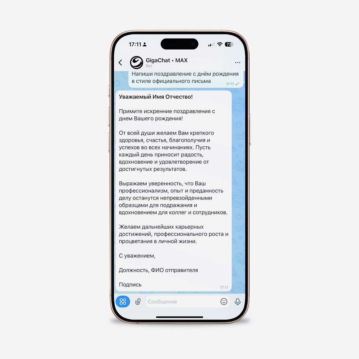 Одна из главных фишек GigaChat — умение работать с текстами. Сбер уверяет, что нейросеть справится со всем: от поздравлений и объявлений до вежливых отписок в рабочем чате. Проверим на практике, насколько она хороша в этом.