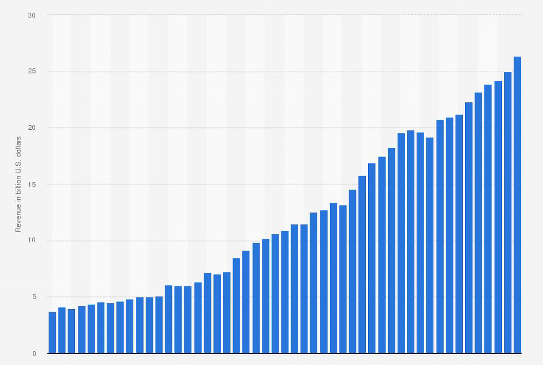 Квартальная выручка с сервисов Apple достигла 26 млрд долларов в 2025 году. В 2013 году она составляла 3 млрд