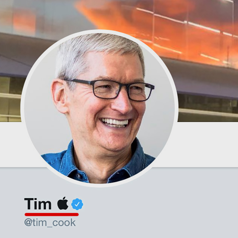 И вот, спустя несколько часов, Тим Кук поменял свое имя в личном твиттер-аккаунте: вместо фамилии Cook теперь там красуется (логотип Apple, яблочко).