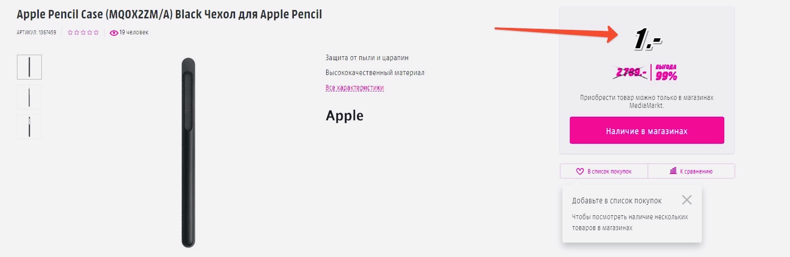 Используете Apple Pencil и хотите недорого купить к нему чехол? Окей, но только не здесь. За рубль его вам точно никто не отдаст.