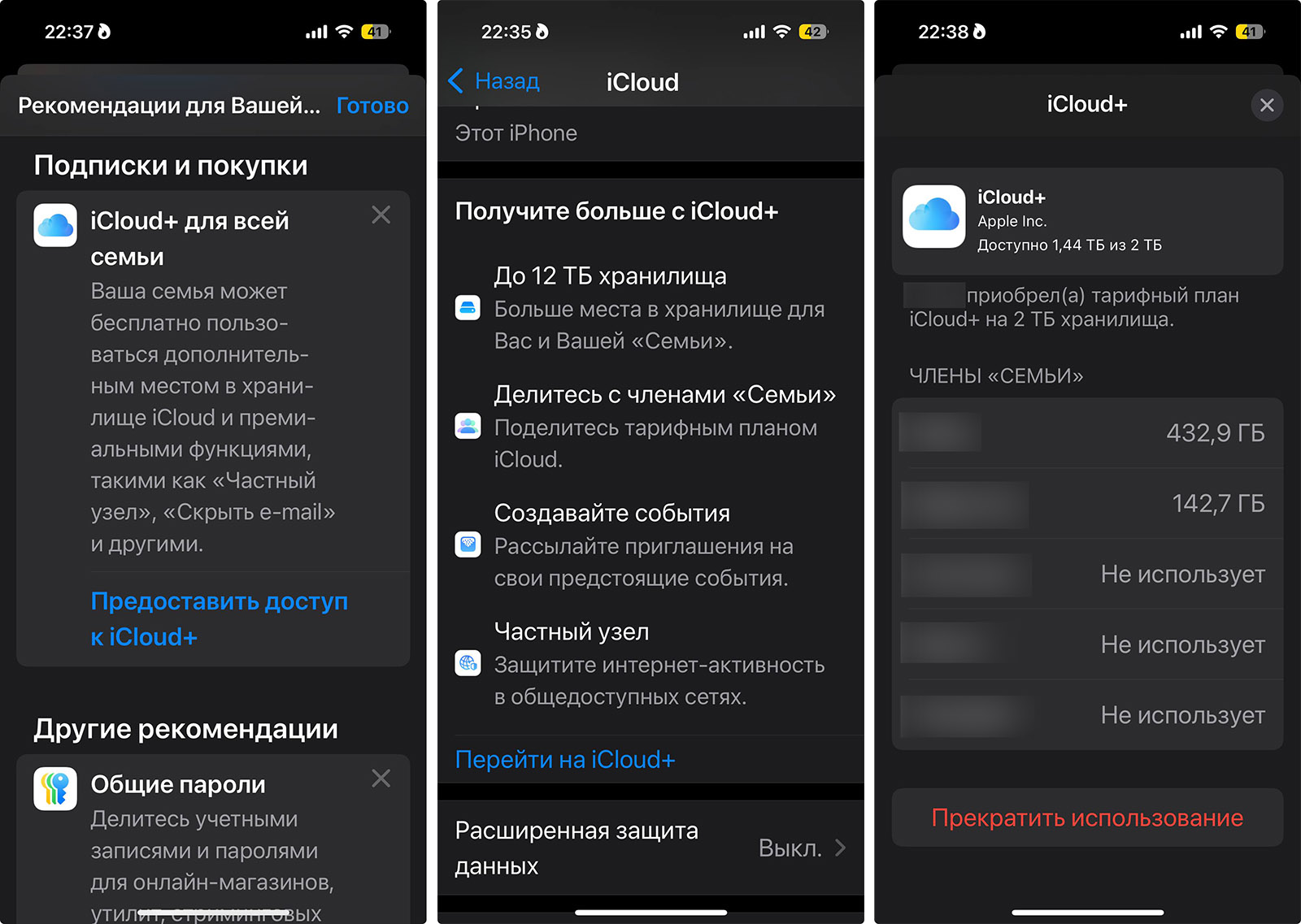 - Они приняли приглашения, снова зашли в настройки iCloud и переподключились к общему тарифу на 2 ТБ.