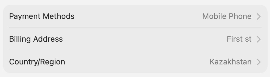 Там я выбрал Казахстан. На экране выбора способа оплаты указал мобильный номер моей новой казахской SIM-карты. Теперь все подписки Apple и покупки в App Store будут списываться с её баланса.