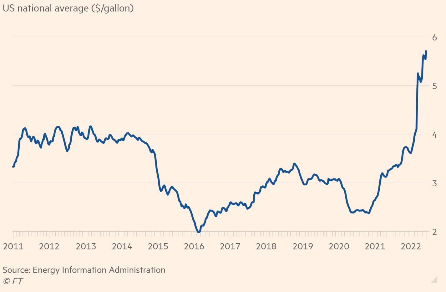 Если в 2021 году средняя цена дизельного топлива была $2,8-3,2 за галлон, то этим летом один галлон стал стоить $5-5,5. При этом цены продолжают расти.