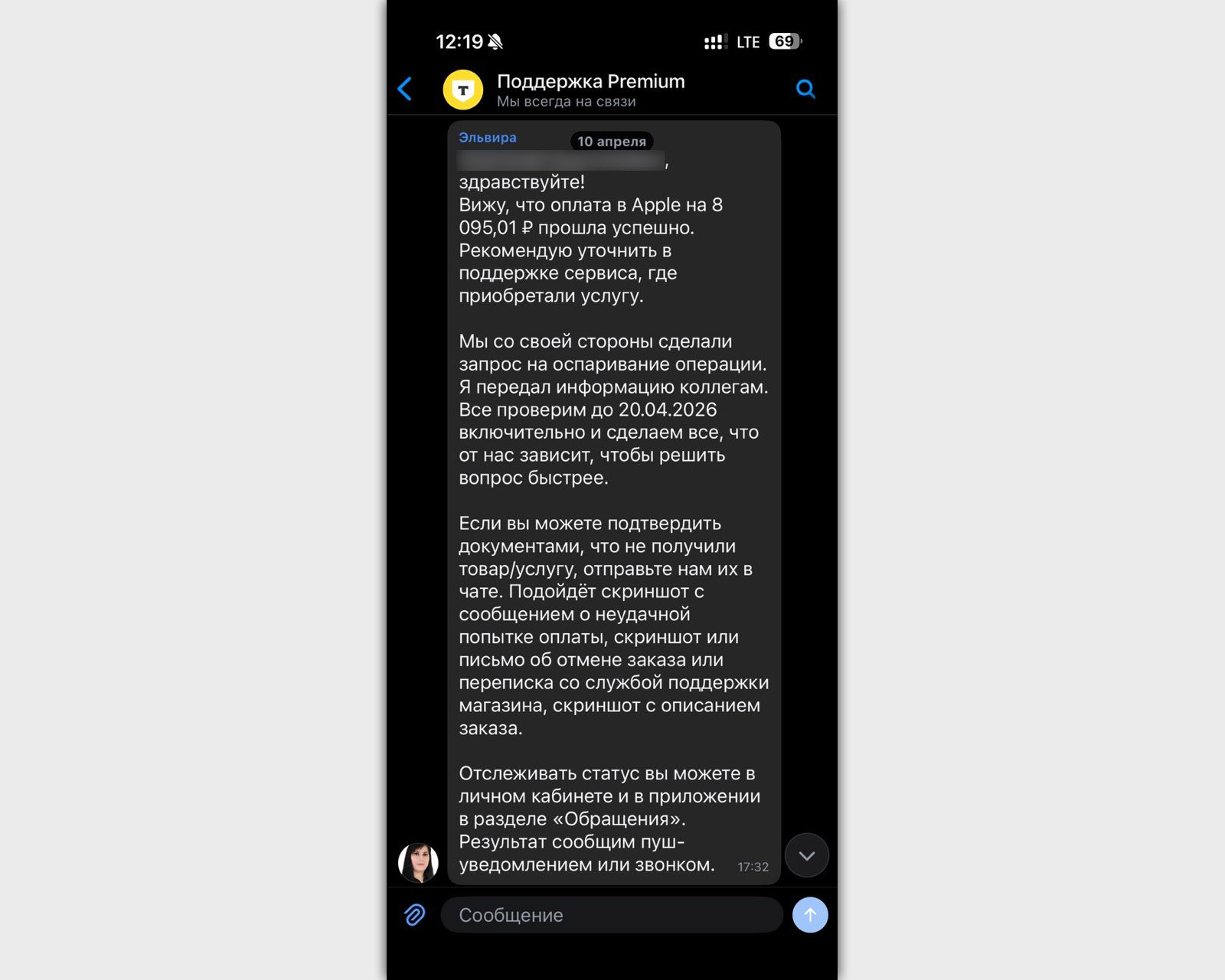 «Вижу, что оплата в Apple на 8 095,01 руб. прошла успешно. Рекомендую уточнить в поддержке сервиса, где приобретали услугу».