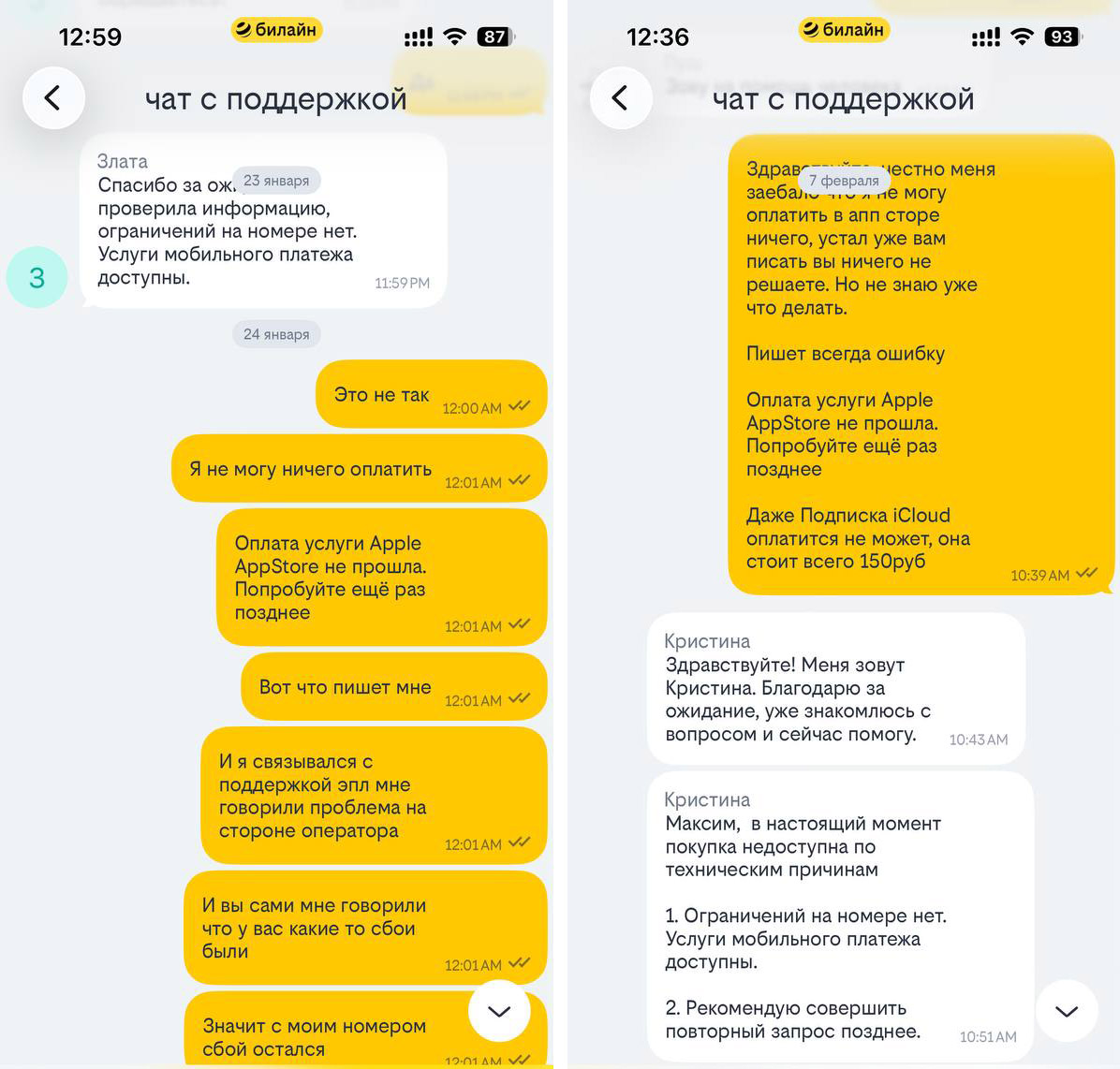 Привет. Хочу поднять тему, потому что уже не понимаю, куда копать. У меня на Билайне перестало оплачиваться вообще всё в App Store. Не проходят покупки приложений, подписки, даже iCloud не могу оплатить. Денег на балансе достаточно, но каждый раз вылезает ошибка и списание не происходит.