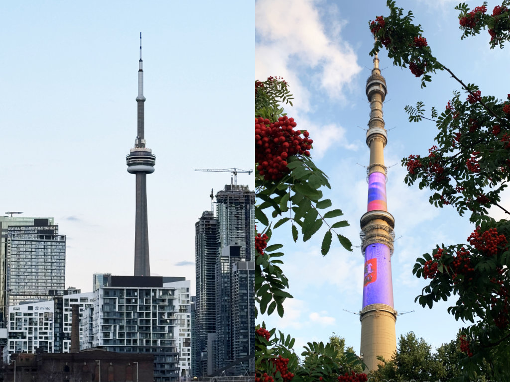 Впрочем, обе башни были построены в приблизительно одно и то же время (Си-Эн Тауэр — 1976-й, Останкино — 1967-й), поэтому ощущаются символами одной и той же эпохи.