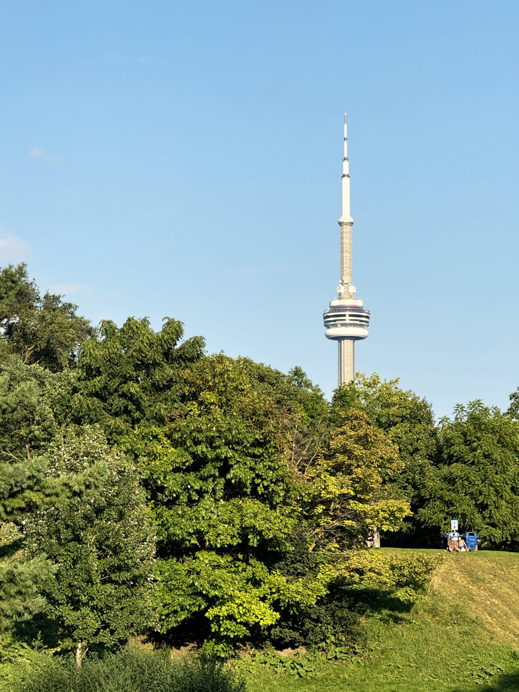 Вид на Си-Эн Тауэр из парка Тринити Белвудс (Trinity Bellwoods Park).