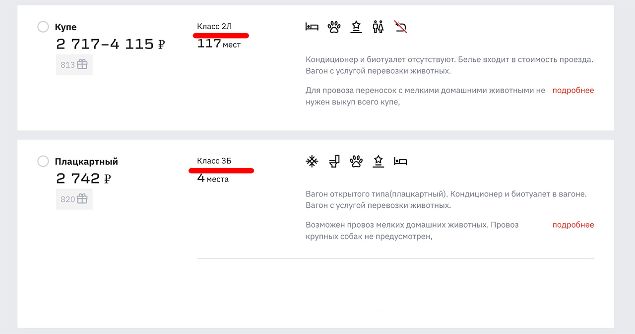 Вот на эти обозначения рекомендую смотреть при покупке билетов на поезд.
