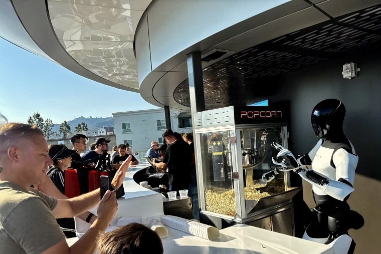 Посетители могут заказывать еду прямо через экран Tesla, а роботы Optimus выполняют функции официантов и разносчиков попкорна (в будущем будут выносить прямо в электромобилю). Атмосфера рассчитана на привлечение как владельцев Tesla, так и любителей технологических новинок и ностальгии.