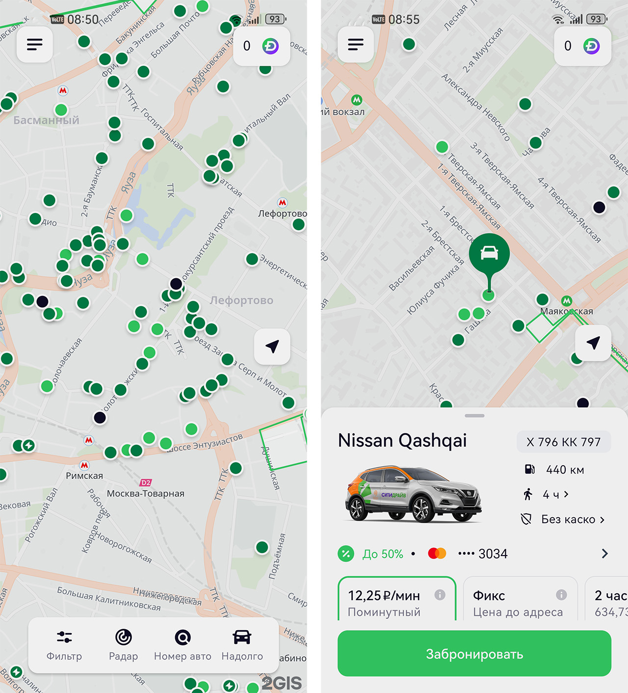 В Делимобиле хороший выбор машин и их достаточно много по Москве. В основном можно взять представителей китайского автопрома, но попадаются и более знакомые Kia Rio и Nissan Qashqai.