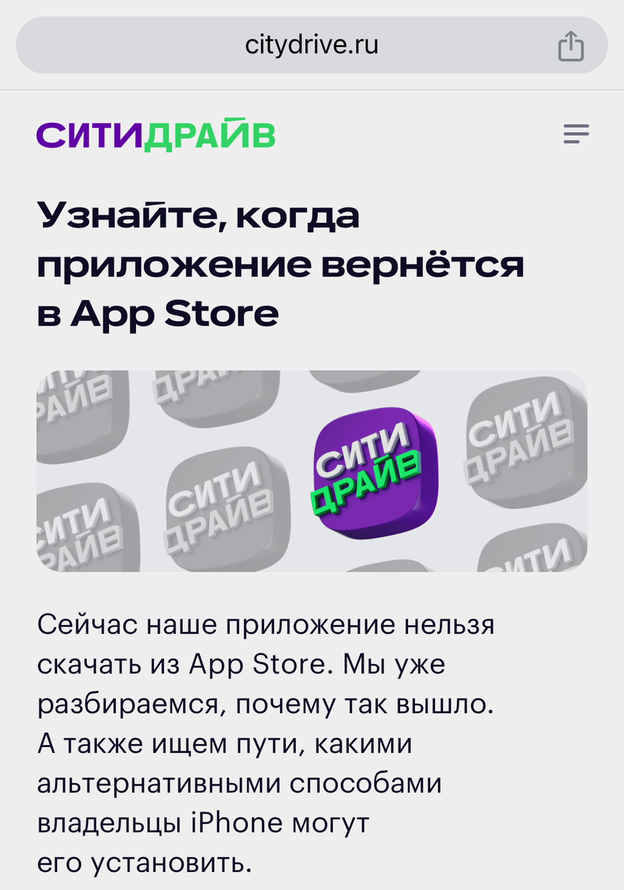Приложения Ситидрайв нет в App Store. Когда появится – неизвестно.