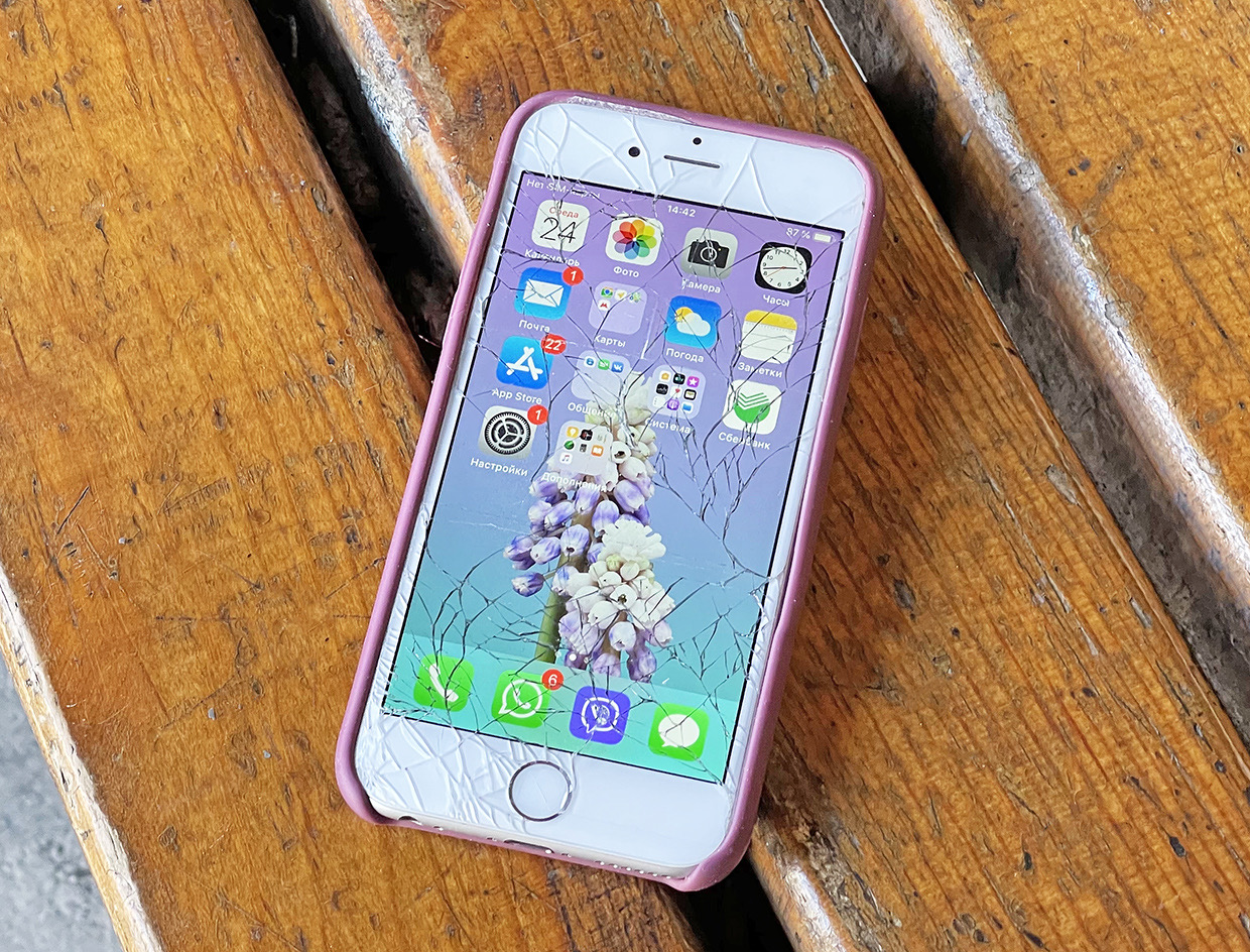 Например. Разбил айфон просто в хлам? Берёшь изоленту – и аккуратно оборачиваешь ей весь экран.