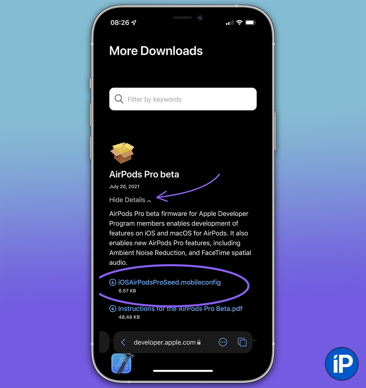 В выпавшем меню тапните на файл iOSAirPodsProSeed.mobileconfig.