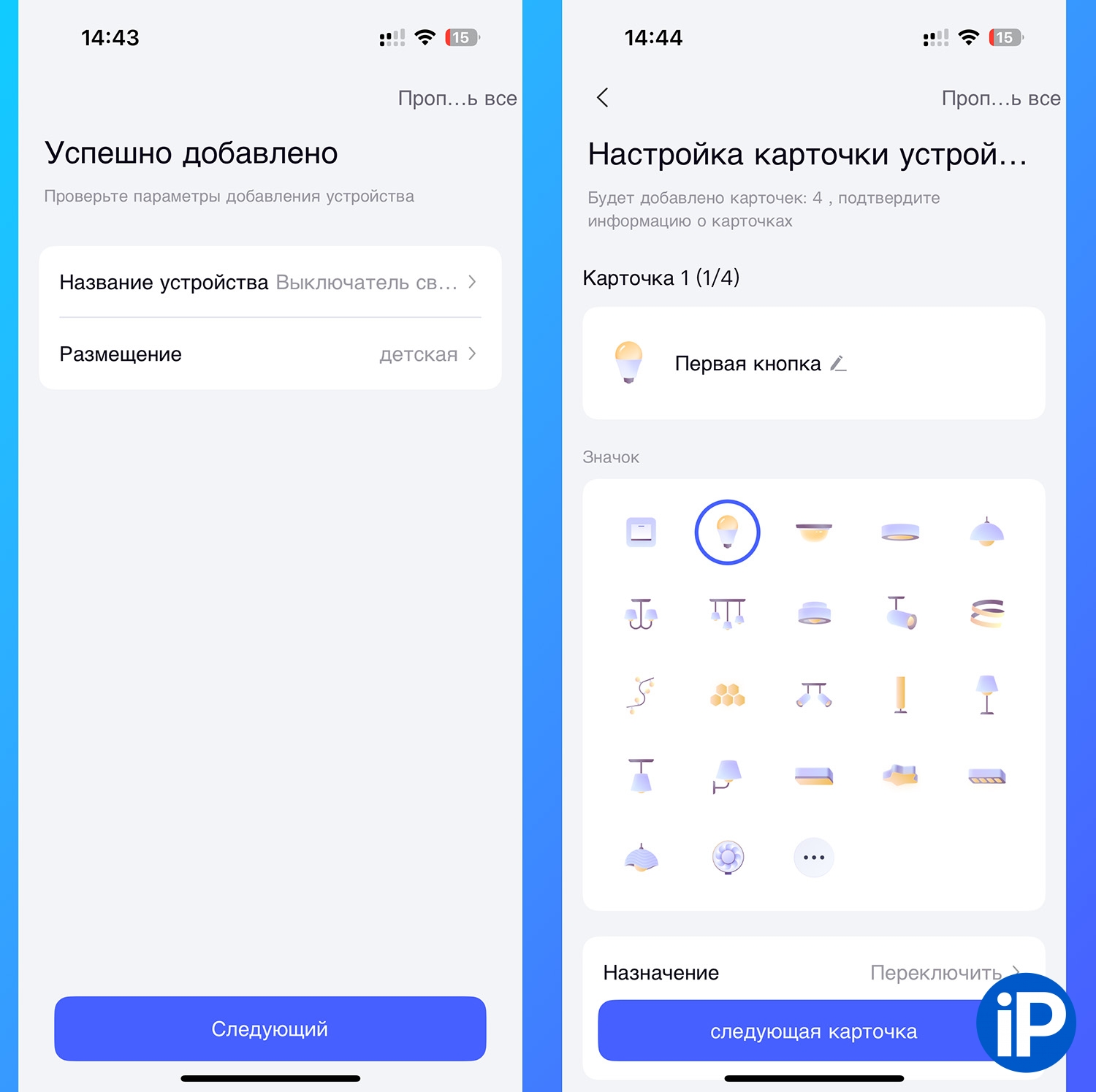 Здесь все просто и привычно для пользователей, которые хоть раз настраивали устройства в умном доме: выбираем кнопку и привязываем к ней какое-то действие.