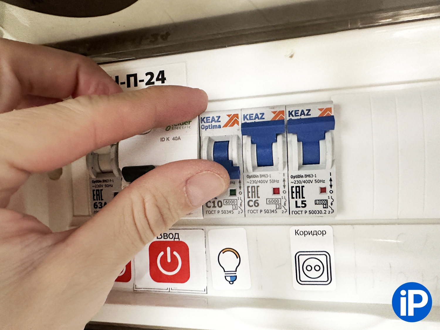 Шаг 1. Отключаем напряжение в комнате, где будем менять выключатели, при помощи автомата в электрощите.