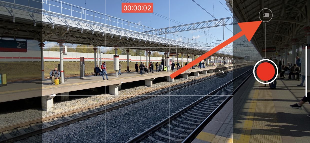 Не отрывая пальца, свайпните от затвора к иконке замка, после этого вы автоматически переключитесь на режим видео. Если просто оторвать палец при захвате видео, не доводя его до замка, iPhone вернётся к съемке фото.
