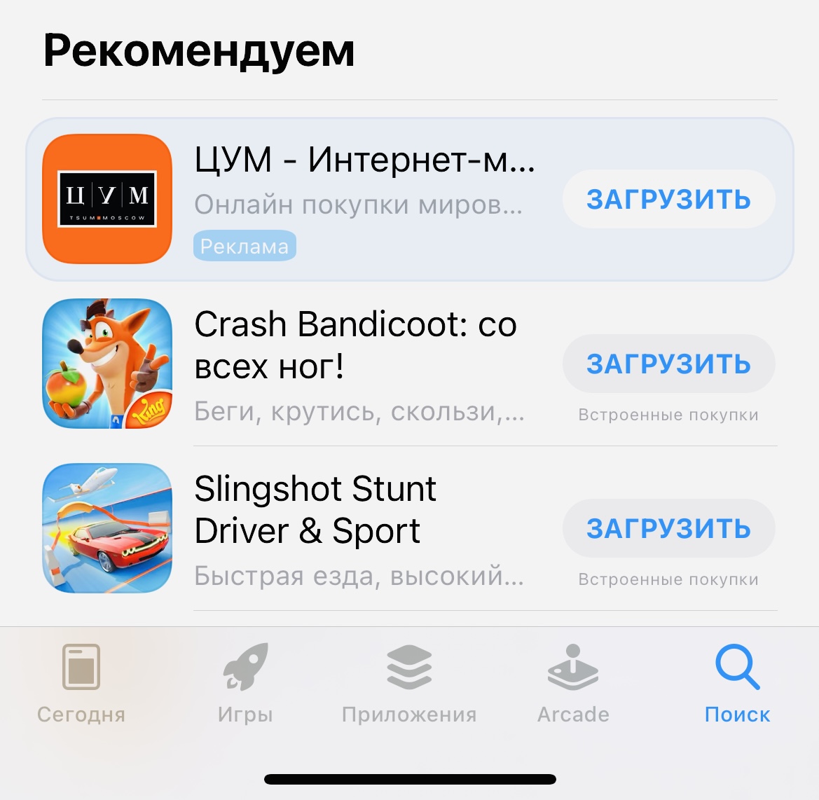 Теперь в поиске App Store появилась строка, в которой продвигаются сторонние приложения. Они основываются на запросах пользователей.