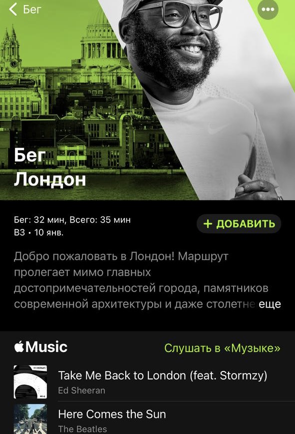 Аудиоподборка «Пробежка» в сервисе Fitness+ помогает пользователям бегать регулярнее и эффективнее и представляет популярные и живописные беговые маршруты в известных городах мира.
