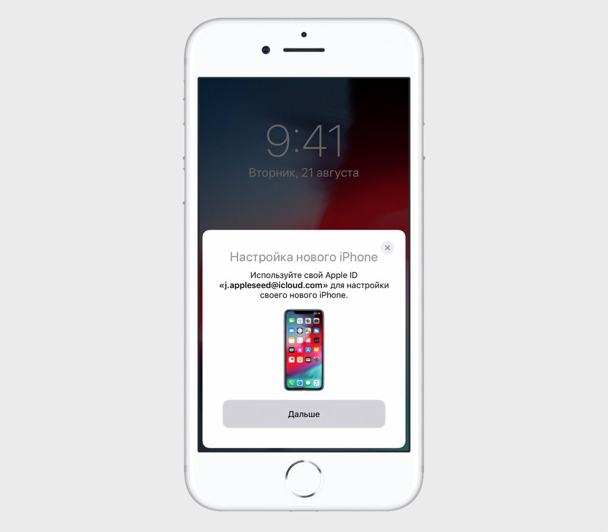 1. Включите новый iPhone и положите его рядом со старым. На экране последнего появится всплывающее окно, в котором будет предложено использовать Apple ID для настройки нового iPhone.