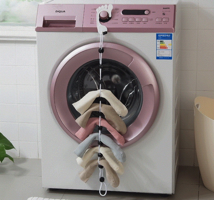 Так образуется «петля», в которую можно поместить после носки. Затянули потуже, и в машинку — остается достать и снять чистые вещи, которые точно никуда не потеряются.