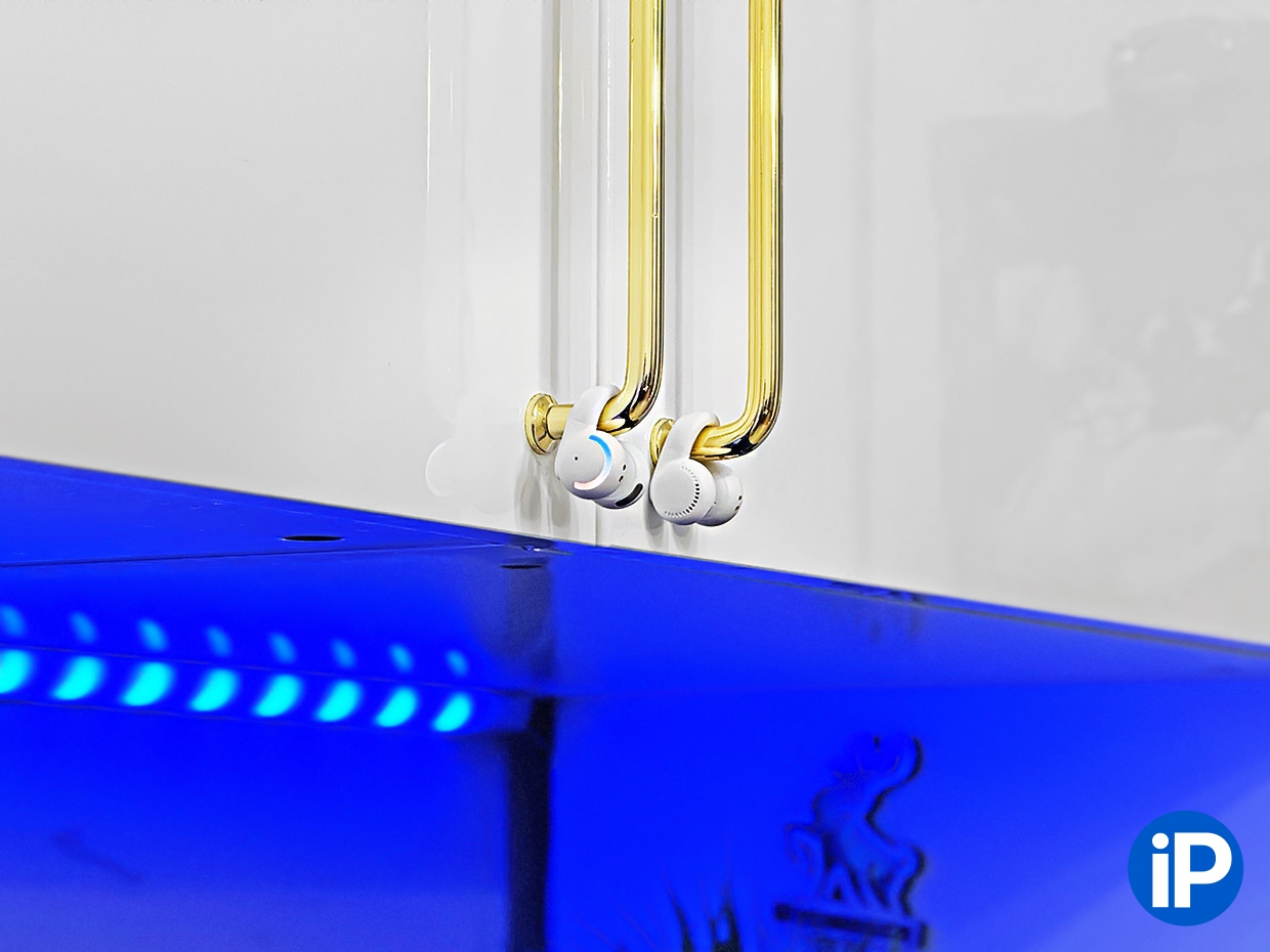 Кейс открытый, наушники на него надеваются сбоку. Зарядка футляра идёт через USB-C. Физических кнопок не предусмотрено как на наушниках, так и на футляре. Увы, держатся не очень хорошо, случайным касанием можно нарушить процесс зарядки.