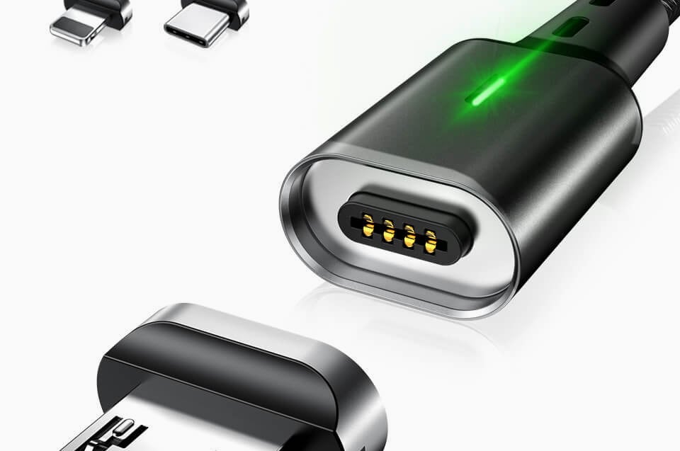 В порт для зарядки вставляется часть кабеля, которая имеет небольшое выступление с набором магнитов и электроникой.