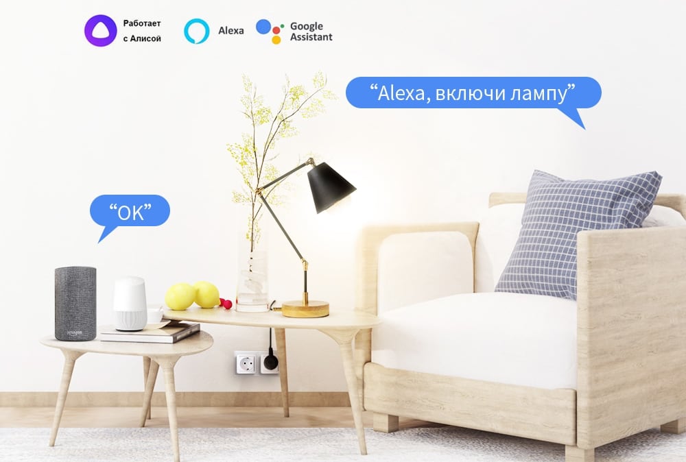 Розетку можно добавить в умный дом Яндекса и управлять ею с помощью Алисы. Также есть поддержка Amazon Alexa и Google Home.
