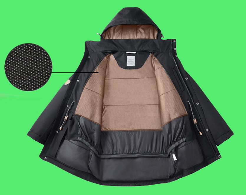 Для дополнительной эффективности и полной изоляции куртка DMN получила металлизированную подкладку, в которой обычный алюминий сменили на серебряные наночастицы.