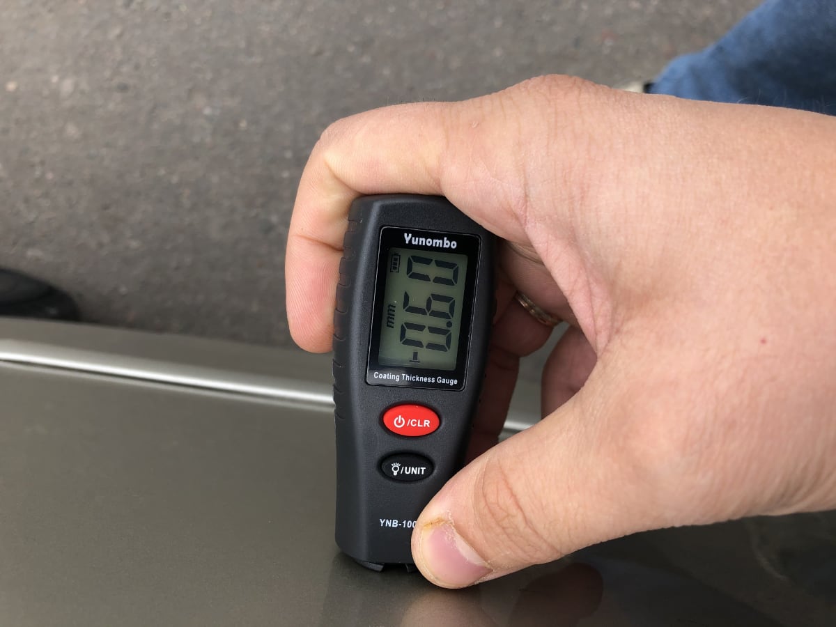 Тестер определяет толщину краски и на основе его показателей можно сделать вывод о том, подвергался ли кузов ремонту.