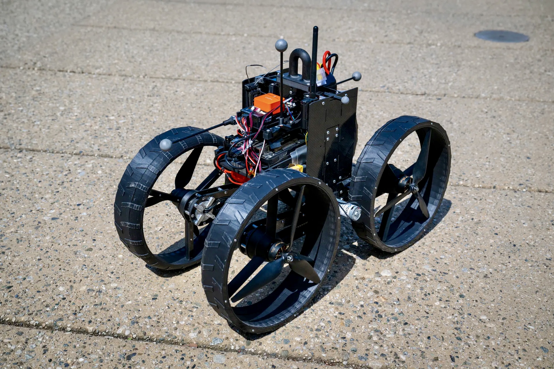 ATMO (aerially transforming morphobot) совмещает в себе функции наземного ровера и летающего дрона. Его главной особенностью является возможность быстрой и плавной смены режима передвижения, благодаря чему устройству не страшны труднопроходимые условия.