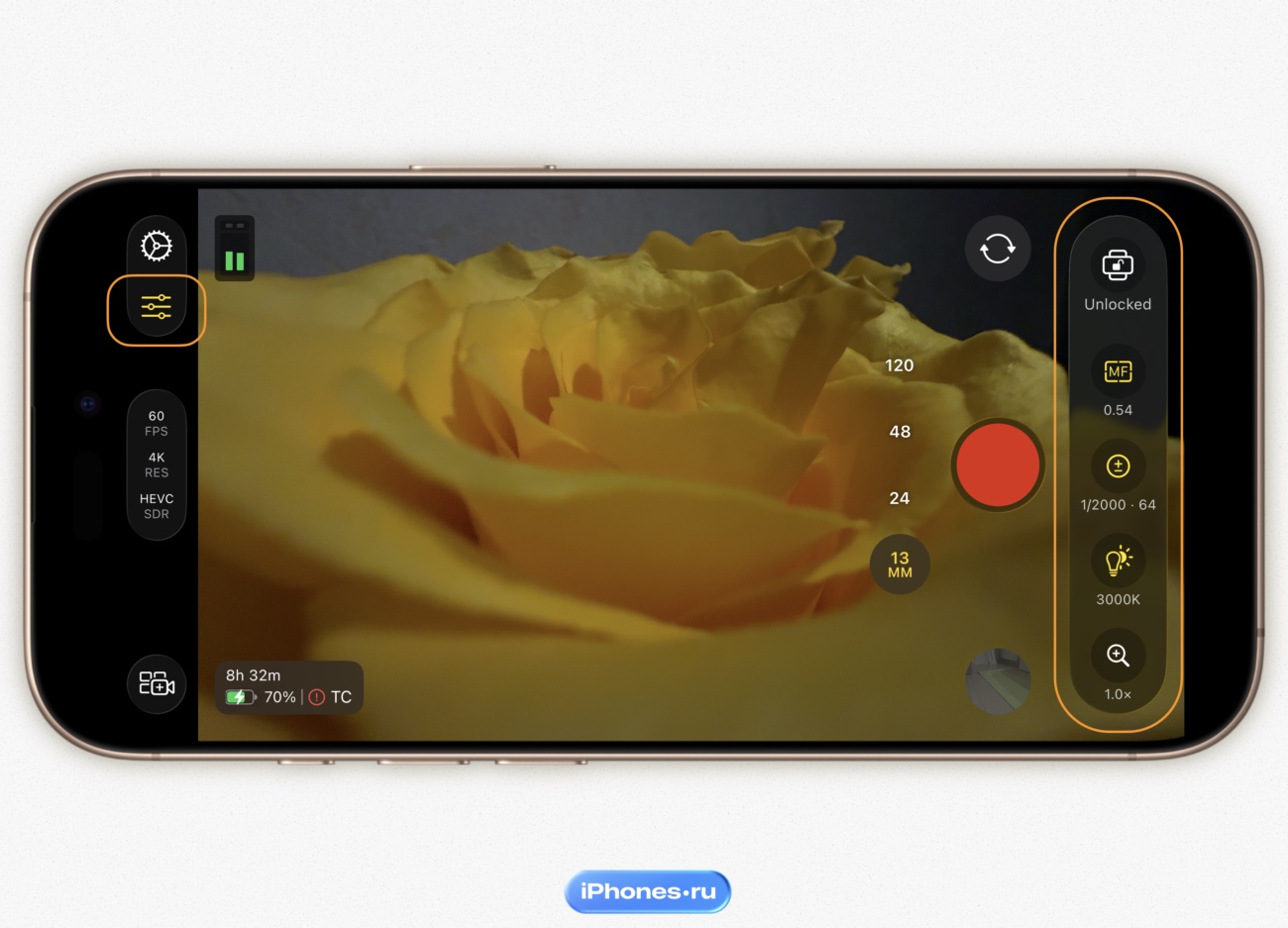 В обычном приложении Камера на iPhone нельзя вручную настраивать баланс белого, плавно менять увеличение, вручную регулировать фокусировку.